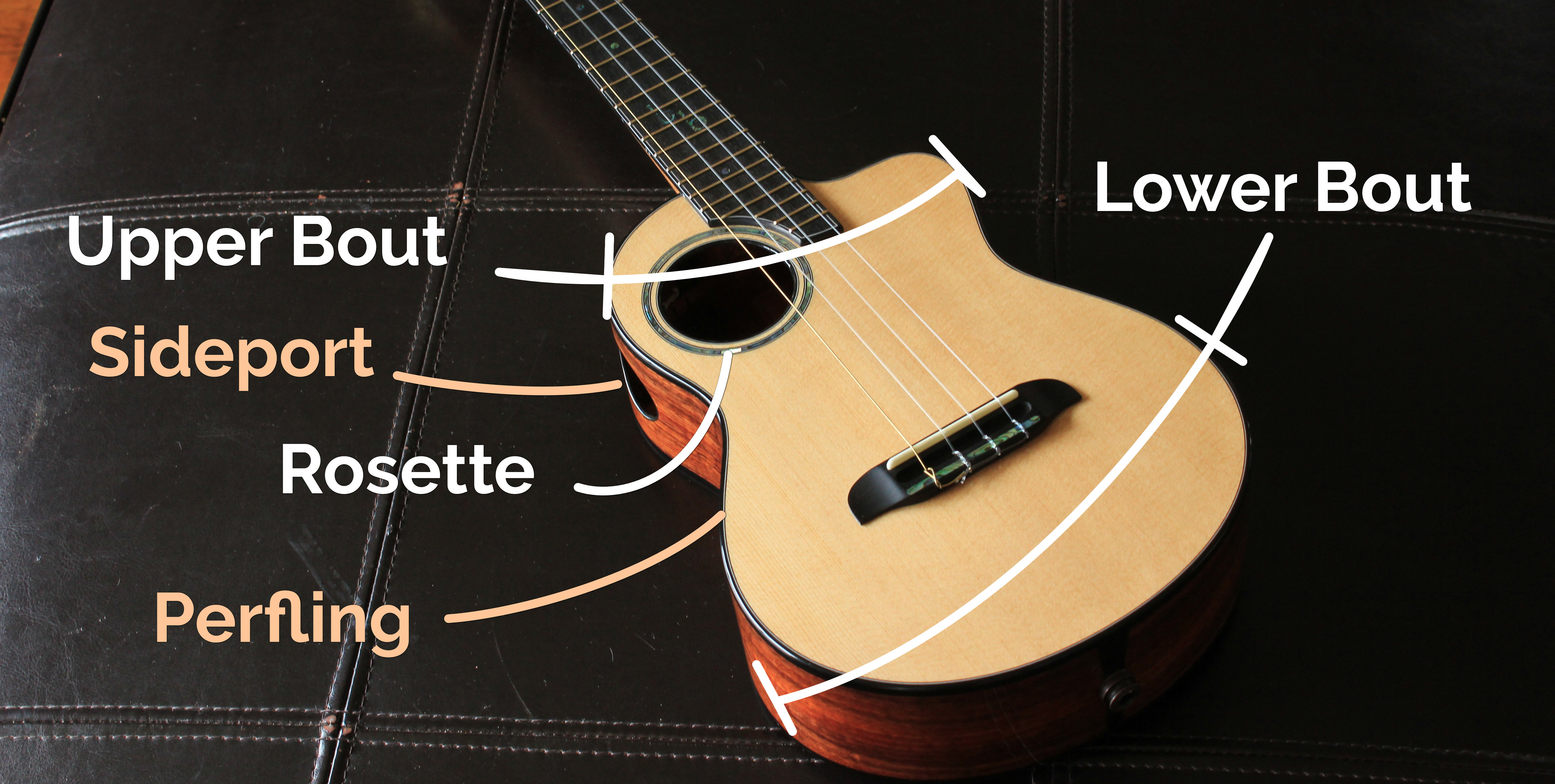 Usually the body of an ukulele has an upper bout and a lower bout. These bouts are the widest points across the curve of a uke and give it its distinctive shape. The lower bout can be thought of as the “hips” and the upper bout as the “shoulders.”