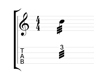 On sheet music and ukulele tab tremolo picking looks like this: